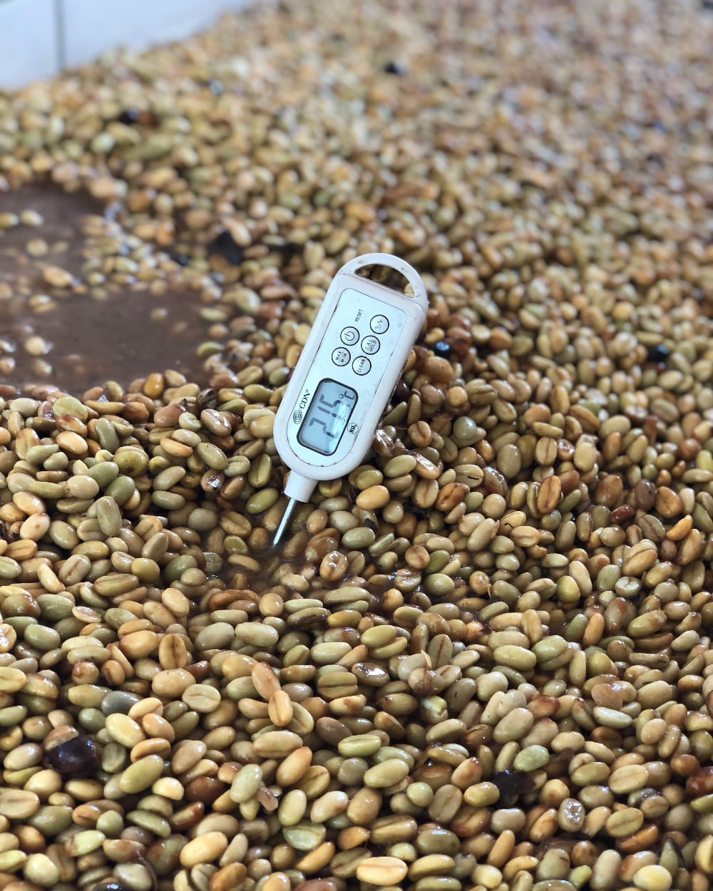 Daniel Munoz is a fantastic producer that we started working with in 2018. He bought his 5 hectar farm Villa Camilla in 2012 and started producing a few years ago. Anne met Daniel and visited his farm in San Augustin in November 2018 and has been there many times since then. Daniel is a very progressive thinking farmer, and has been taking cupping lessons in San Agustin and he is now working closely with Esnaider Ortega who is a fantastic grower, roaster and cupper running the lab in San Augustin and also helping other farmers with quality control at the farms. Daniels own farm – villa Camilla – is very well maintained and his attention to detail is impressive. To be able to know when the cherries are perfectly ripe and ready to be picked he is using a Brix meter to measure the sugar content of the pulp. Since the cherries are pale pink-orange in colour it can otherwise be a little challenging to determine when they are perfectly ripe.
